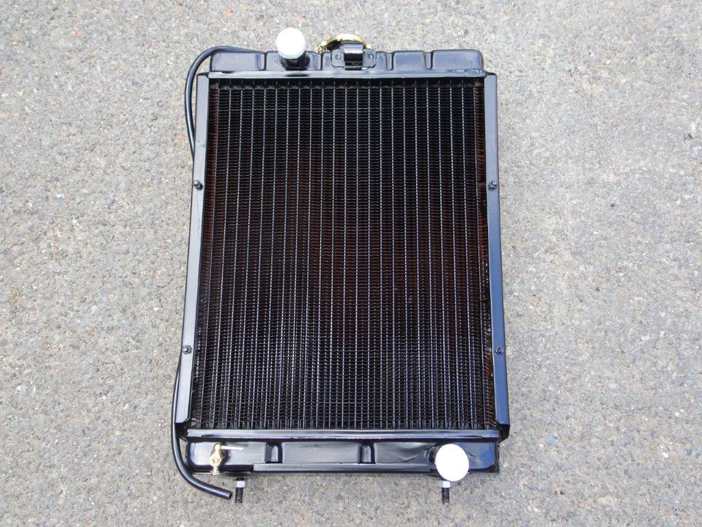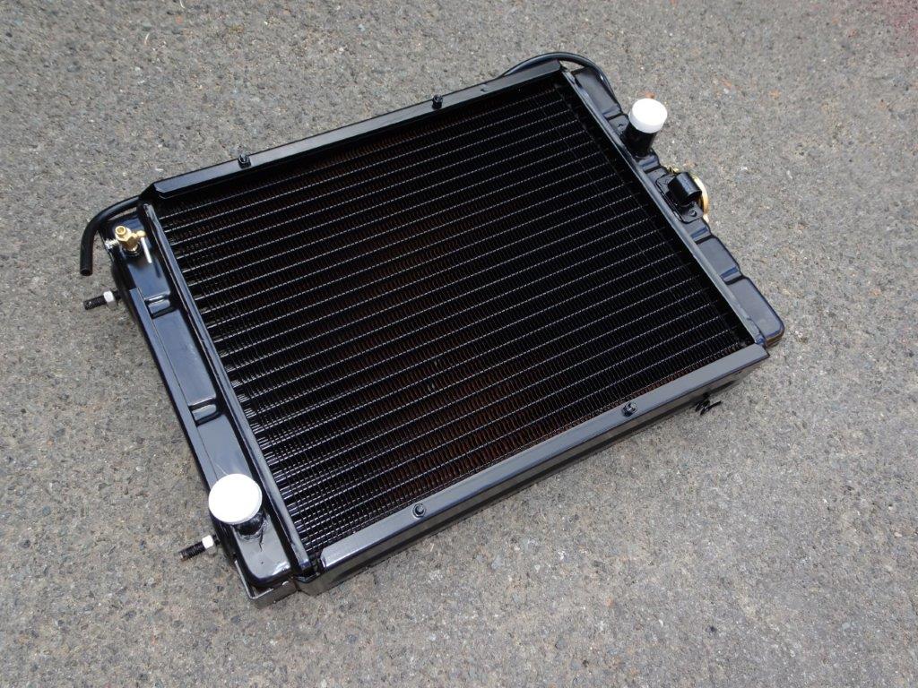 Breite ca. 41 cm und Höhe über alles gemessen ohne die Gewindebolzen unten dran : 57,3 cm bis Oberkannte Kühlerdeckel.
